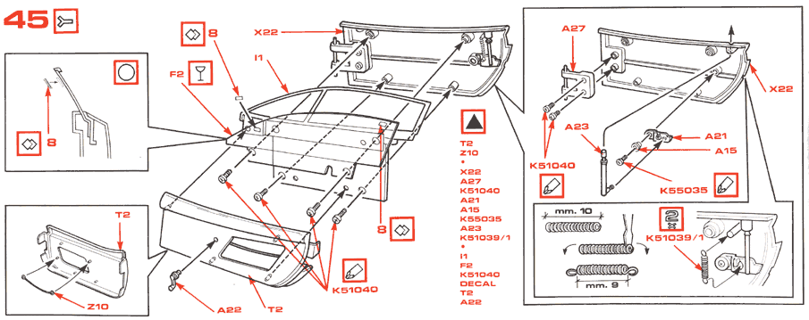 Anbauteile Motorhaube, Rückleuchten