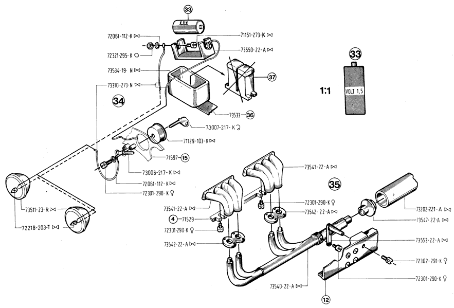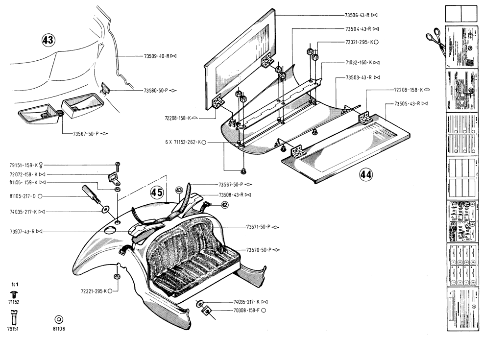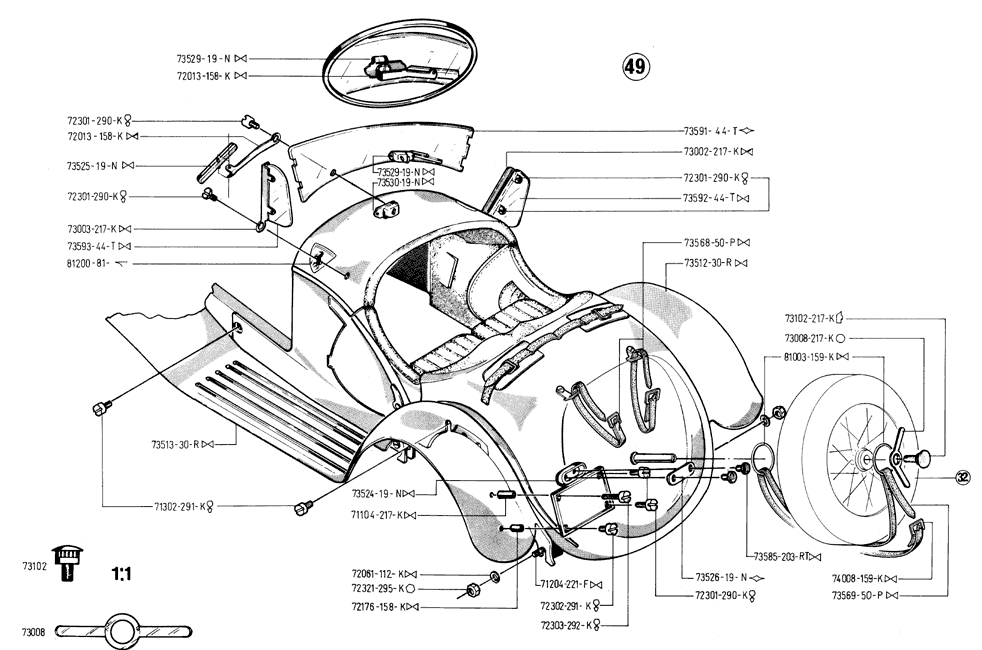 Kotflügel, Reserverad, Windschutzscheibe, Rücklicht