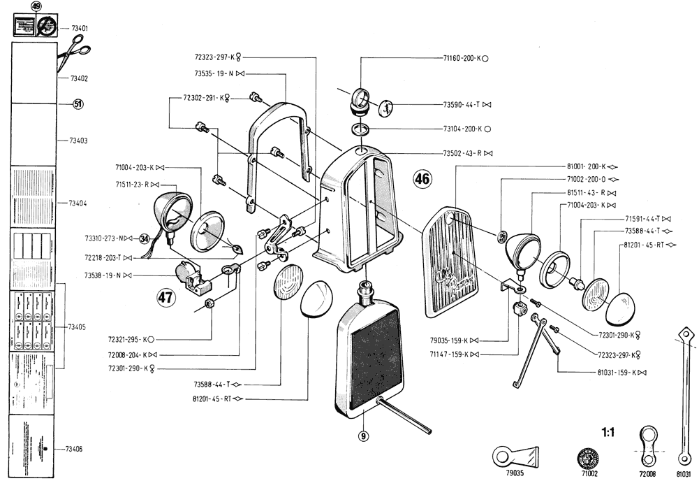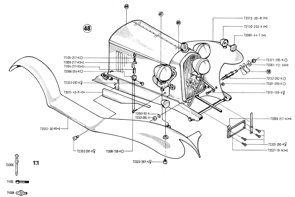Haubenhalter, Nummernschildplatte, Blinker vorne