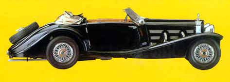 Mercedes 500K / AK Cabriolet 1935 K93Dieser Wagen zählt zu den seltensten Autos, die je gebaut wurden. Nur zwei Exemplare wurden hergestellt, und das POCHER-Modell ist eine naturgetreue Nachbildung des beeindruckenden Originals. Der typische freigestellte Mercedes-Kompressor fesselte jeden Bewunderer. Das Auto trägt mit Stolz eines der aufregendsten und schwungvollsten Wagenchassis seiner Ära. Unter dem Mercedes-Qualitätszeichen der Dreißigerjahre sind die außen verlaufenden, aus verchromtem Biegstahl geschaffenen Auspuffrohre und der prächtige Kühler mit seinem dreispitzigen Sternsymbol und auch die schnittige Windschutzscheibe unvergesslich geblieben. Während vom 500 K/AK nur zwei Fahrzeuge gebaut wurden, produzierte man vom 500 K Serienfahrzeug zwischen 1933 und 1936 größere Stückzahlen. Dieses Modell hat leider keine Metallspeichen mehr (nur 4 anstelle 135 Teilen). Länge: 65 cm - Breite: 25 cm - Höhe: 23 cm - 1592 Einzelteile |